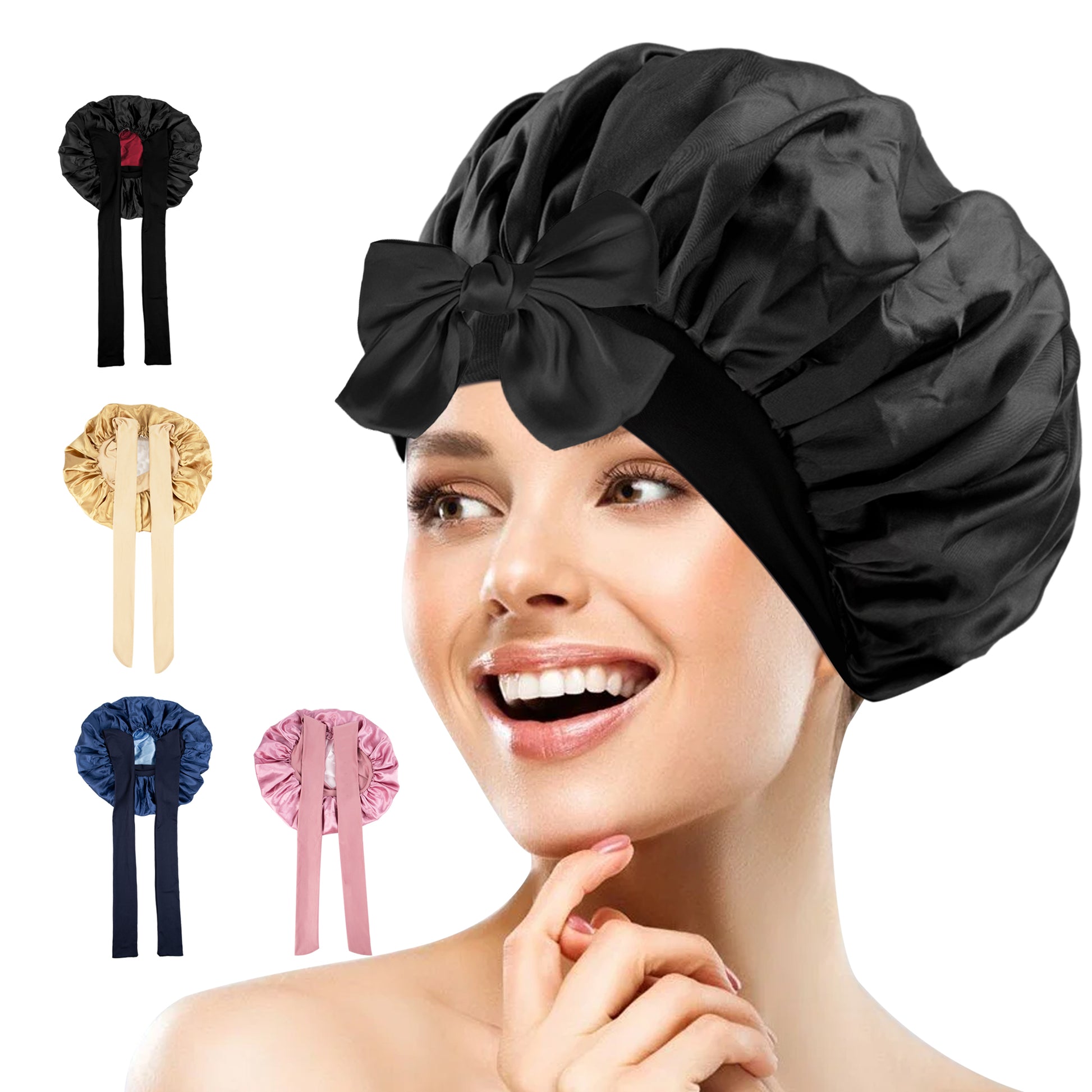 5.TK-双色浴帽带飘带-002黑