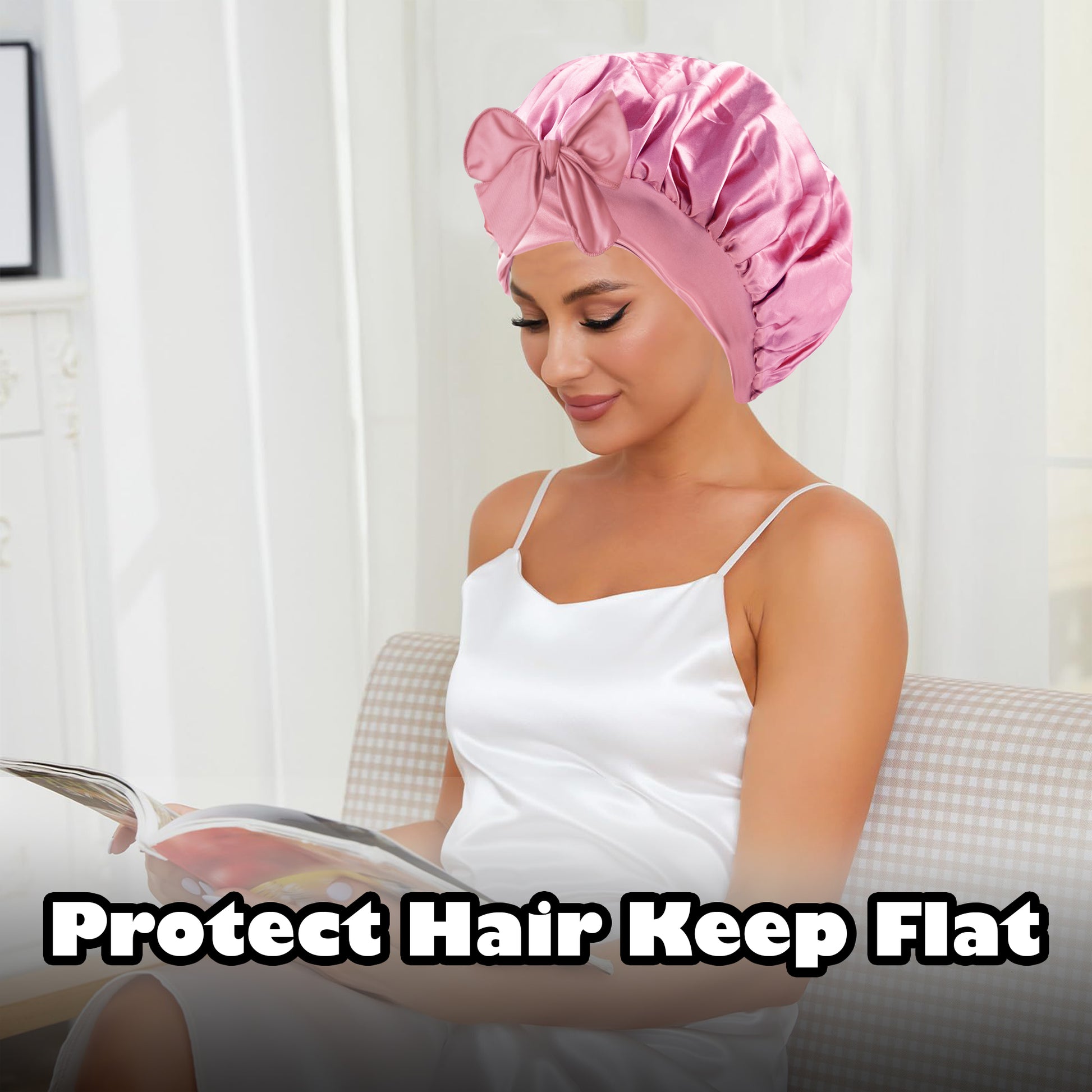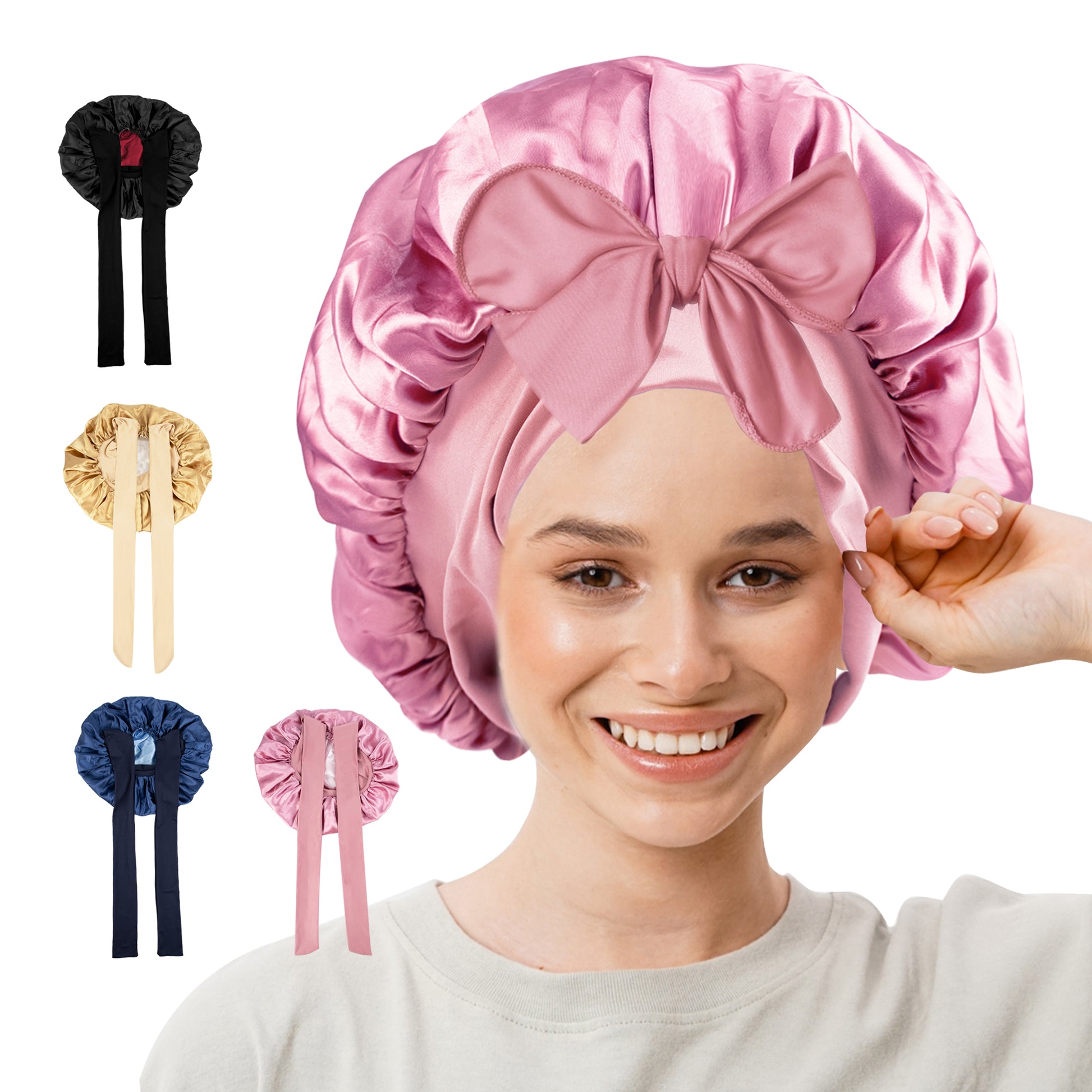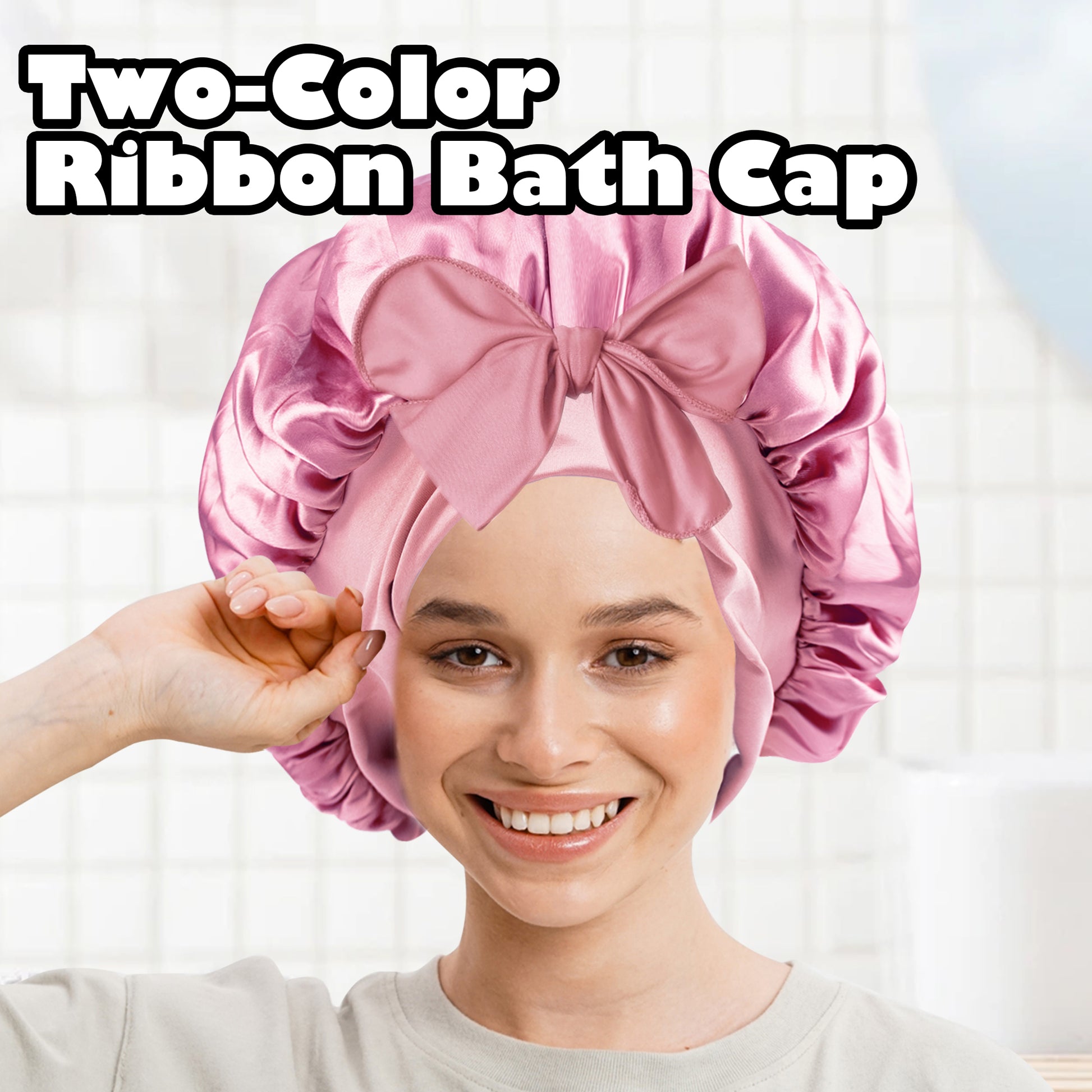 5.TK-双色浴帽带飘带-003粉