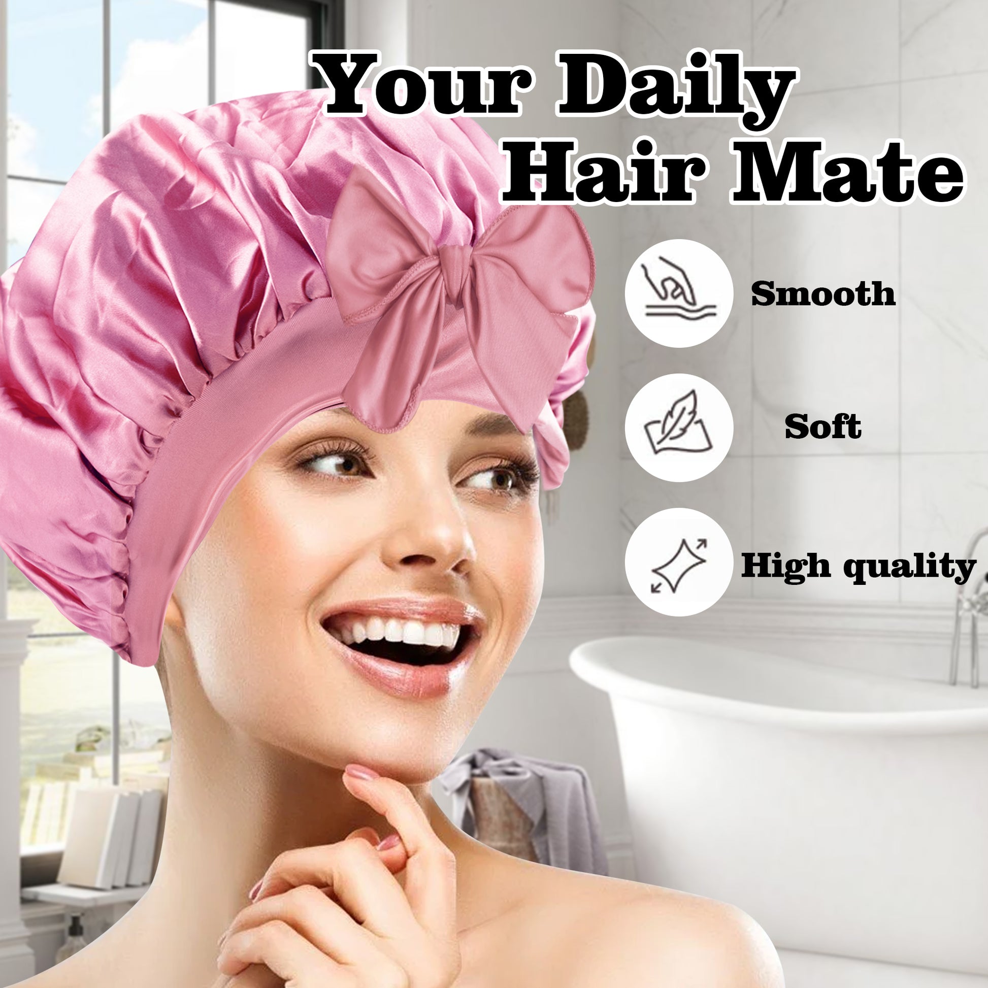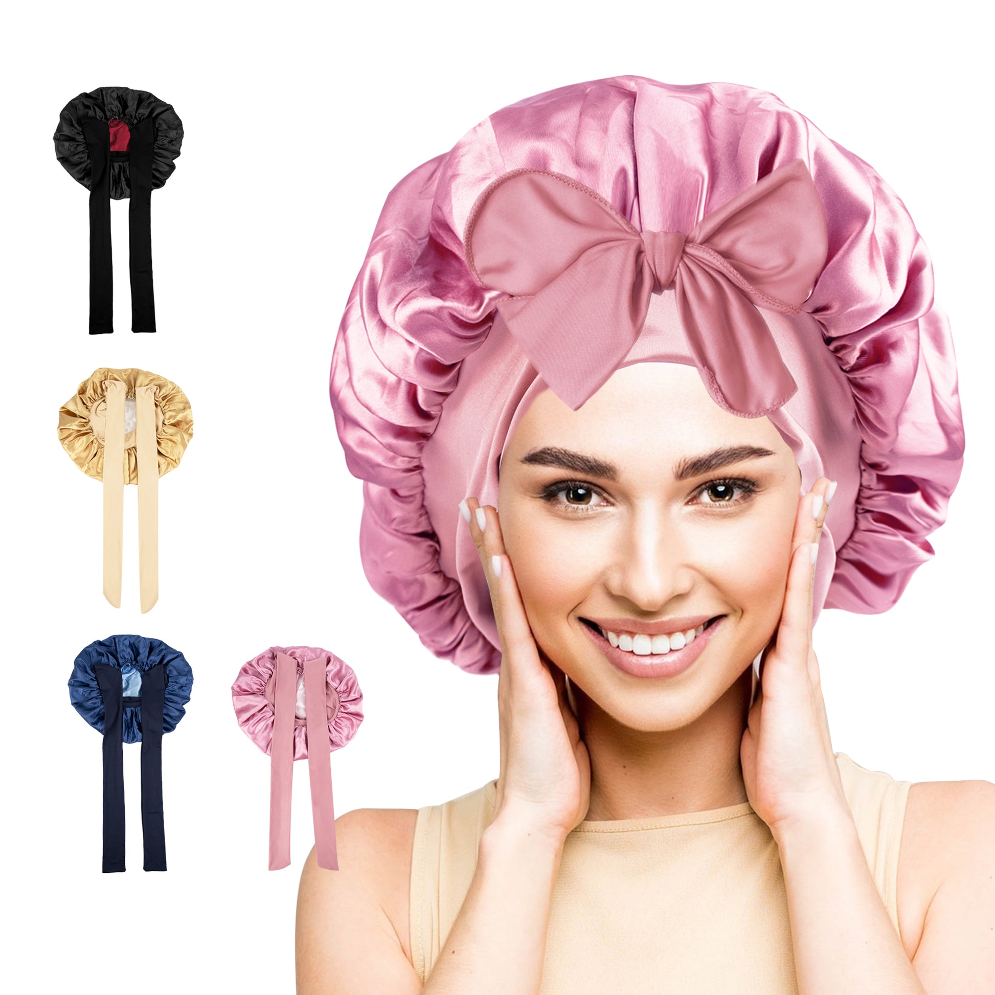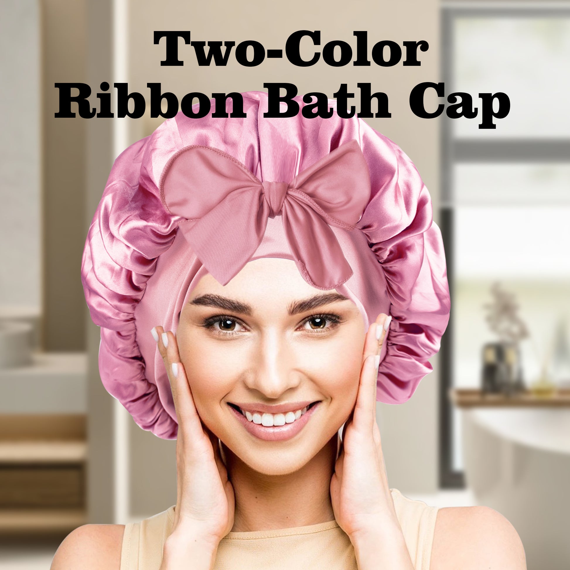 5.TK-双色浴帽带飘带-005粉